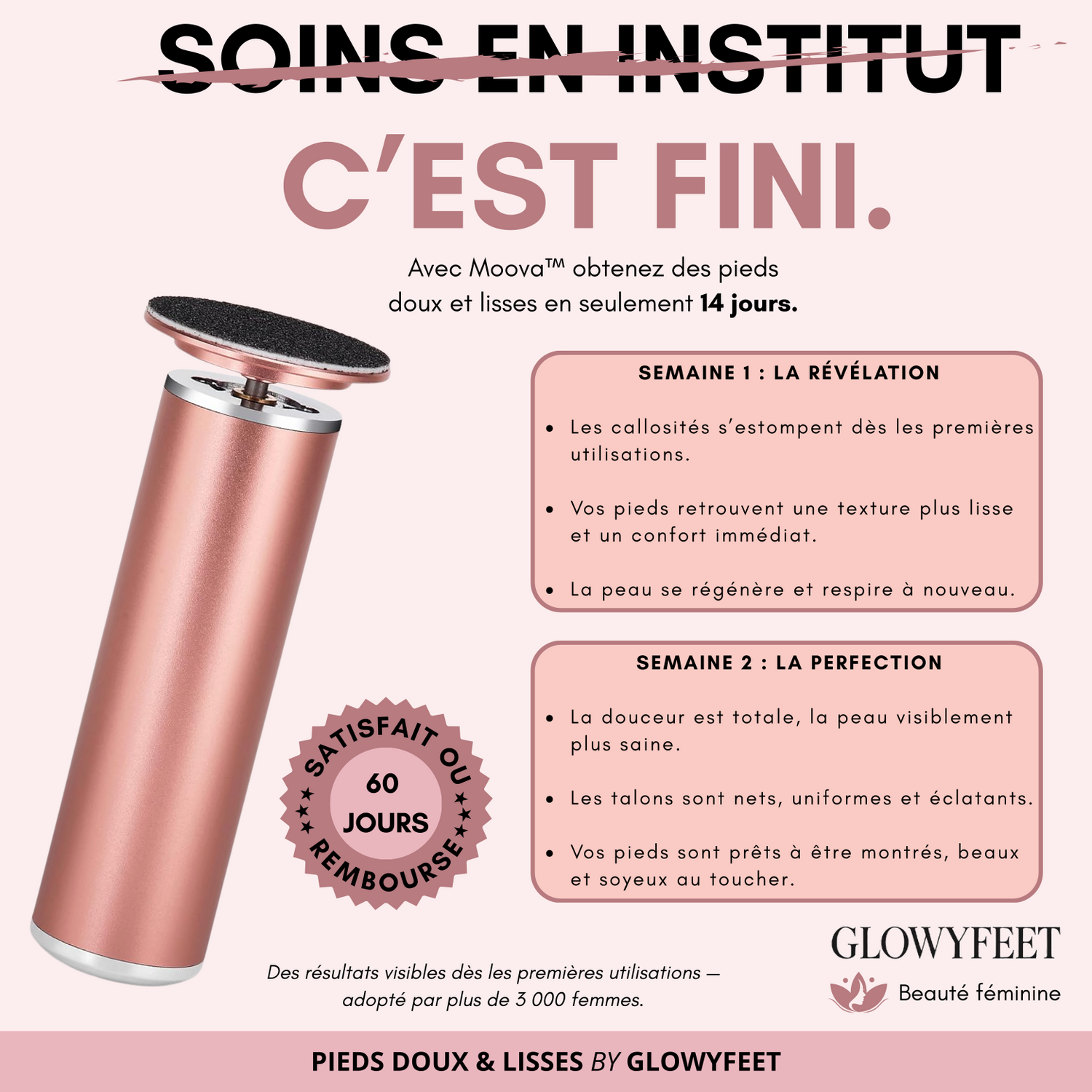 Découvrez la différence Moova™ : des pieds doux, lisses et éclatants dès la première séance — sans douleur, sans effort.