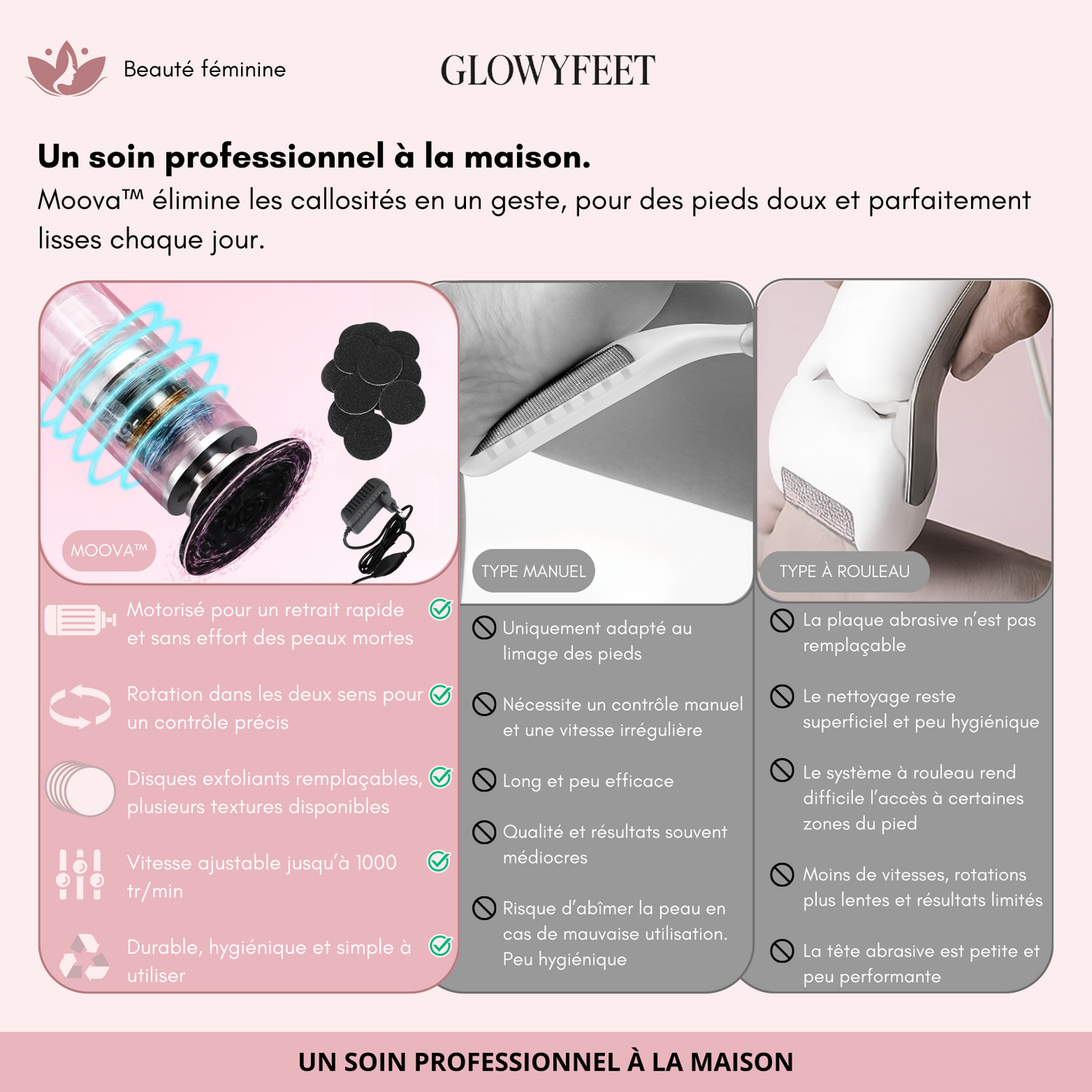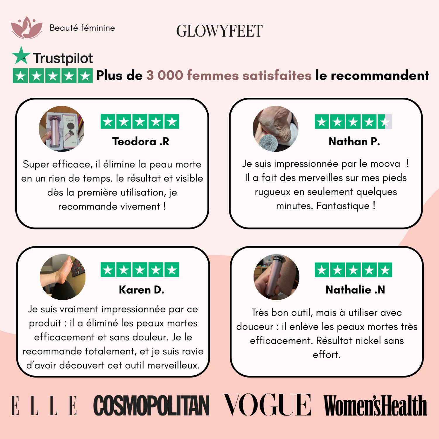 « Je peux enfin porter à nouveau des pantoufles » « Ça ne fait vraiment pas mal du tout » « Un vrai moment spa à la maison » « Rapide, efficace et très agréable à utiliser »
